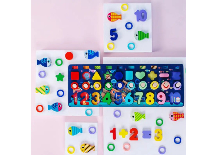 рыбалка, цифры, геометрические фигуры, кольца для счета
