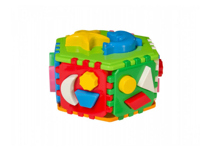 Щоб скласти шестигранник, дитині потрібно з'єднати його стінки, які являють собою 6 різнокольорових елементів. Крім того, в кожній стінці куба є фігурні отвори, до яких потрібно підібрати фігурки тварин відповідної форми. Підбираючи фігурки під отвори, дитина вивчає форми і кольори, вчиться порівнювати і аналізувати, розвиває пам'ять і логіку.