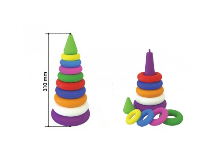 - Пірамідка з кольоровими кільцями, що нанизуються на вісь