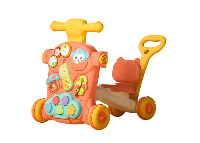 Іграшка швидко трансформується, перетворюючись на бажану модель. Її легко збирати, вона має легку вагу, а колеса каталки обладнані протиковзними кільцями, щоб дитина під час ходьби почувалася максимально впевнено.