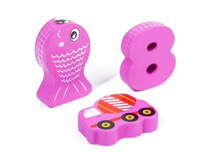 Іграшка являє собою стійку підставку, на яку потрібно ловити рибку / знімати елементи при цьому вивчаючи їх зміст. Знімаючи та вставляючи елементи на основу малюк знайомиться з формою та розміром предметів, запам'ятовує кольори, вивчає кількісний рахунок.