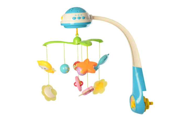 Мобіль на дитяче ліжечко являє собою набір підвісних іграшок-брязкалець, які обертаються на 360 градусів під легку музику. Грають заспокійлива пісеньки та мелодії. Також в іграшці є проектор з картинкою місяця і зоряного неба. У комплекті йде пульт, яким батьки можуть управляти іграшкою. Усередині п'ять іграшок. Іграшки знімні - їх можна кріпити до колясці, дузі розвиваючого килимка.