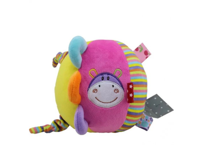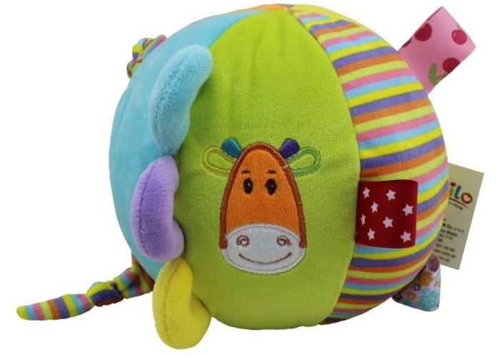 М'ячик виготовлений із приємного на дотик матеріалу з різноманітними фактурами. Прекрасно стимулює розвиток зорово-слухової та рухової координації дитини. Додатковим атракціоном є захований у середині м'яча дзвіночок та стрічки, що розвивають вміння ловити. Іграшка призначена для дітей віком від 0 місяців.