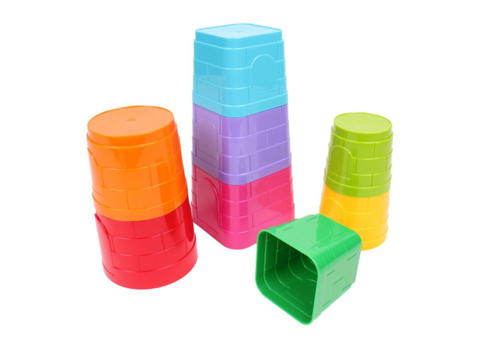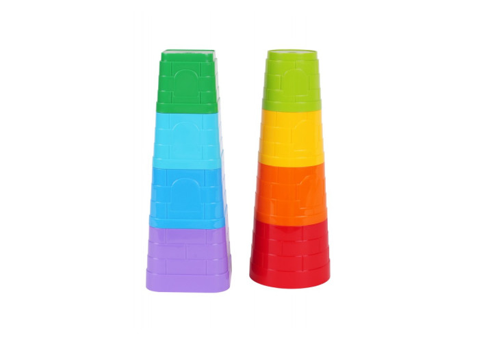 Іграшка «Пірамідки ТехноК» - набір з двох пірамідок, які відрізняються формою елементів. В одній з них форма основи елемента квадратна, а в іншої кругла. Обидві пірамідки імітують вежі середньовічного замку з вікнами і дверима та камяною кладкою. Кожна пірамідка складається з 4 різних за розміром та кольором елементів. Щоб зібрати вежу малюк повинен правильно підібрати елементи не тільки за розміром, а також за формою основи - круглої або квадратної. Іграшку можна використовувати в іграх з піском вона буде незамінною при побудові фортець та замків.