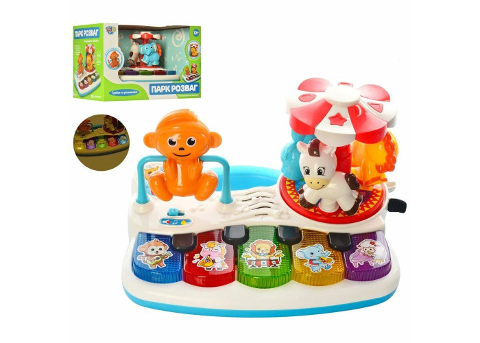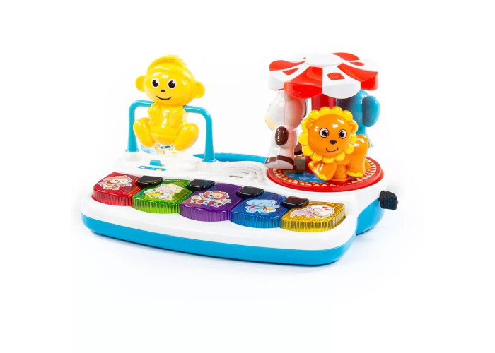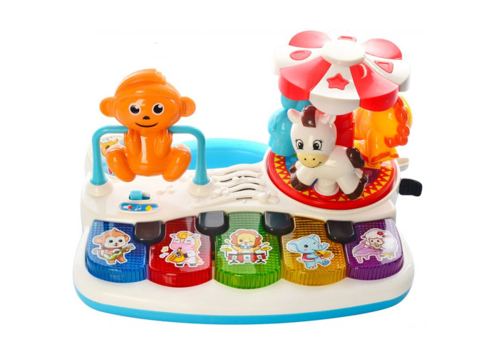 Цікаве піаніно «Карусель» приверне увагу малюка від року своїм барвистим дизайном, рухливими елементами і цікавими функціями. Після включення іграшки малюк зможе використовувати піаніно за прямим його призначенням, а також запускати за допомогою його клавіш звуки тварин і веселі мелодії.