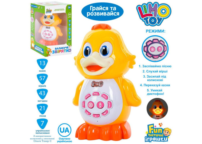Це інтерактивне каченя здивує та потішить малюків. Справжня знахідка для малюків і їх батьків. Каченя настільки багатофункціональне, що рідко яка іграшка може з ним позмагатися в цьому.