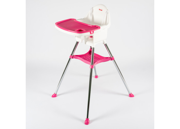 Ніжки у стільця для годування дитини міцні, виконані з металу, з прогумованими накладками, що не дає стільчику ковзати по підлозі і дряпати його.