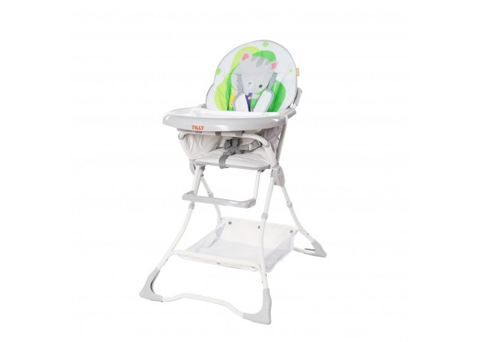 Стільчик для годування "Tilly Buddy: Green Cat" - відмінний варіант, коли мова заходить про те, щоб полегшити процес годування, а також зайняти малюка з допомогою цікавих розвиваючих ігор на якийсь час, необхідне для приготування їжі. Сидячи в такому стільчику, він може малювати, ліпити чи складати пазли. Якщо дитина активний навіть під час їжі, то краще зафіксувати п'ятиточковим ременем безпеки, щоб маленький непосида не випав. Знімна стільниця дозволяє швидко і легко прибрати залишки їжі зі столу. Дитину в такому стільчику можна присунути до спільного столу, де він буде не просто бачити інших членів сім'ї, а ще і вчитися вести себе за столом.