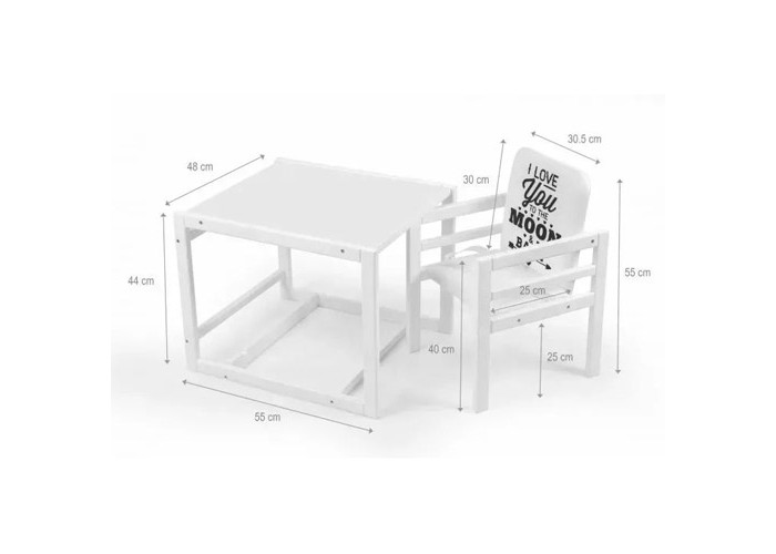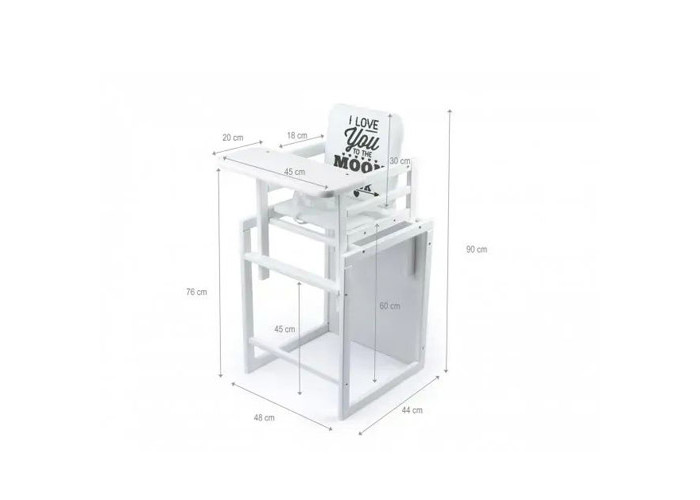 Дитячий дерев'яний стільчик для годування ОMMI Color білий виготовлений з натуральної деревини - масиву вільхи. Цей стільчик для годування є моделлю-трансформером. З 6-го місяця, його можна використовувати як стільчик для годування, а в подальшому, коли малюк підросте, може служити ігровим столиком і звичайним стільчиком. Даний стільчик є, багатофункціональним меблевим гарнітуром, Ваш малюк буде грати улюбленими іграшками, малювати перші малюнки, ліпити перші скульптури і багато іншого.