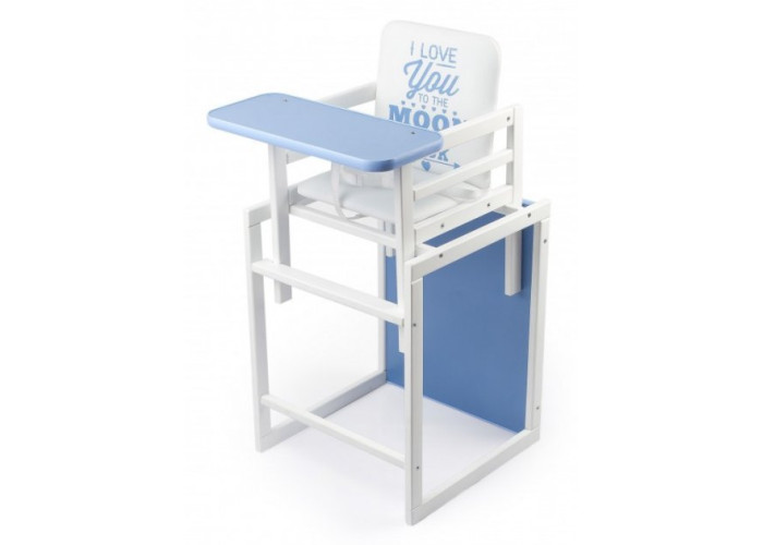 Дитячий дерев'яний стільчик для годування ОMMI Color блакитний виготовлений з натуральної деревини - масиву вільхи. Цей стільчик для годування є моделлю-трансформером. З 6-го місяця, його можна використовувати як стільчик для годування, а в подальшому, коли малюк підросте, може служити ігровим столиком і звичайним стільчиком. Даний стільчик є, багатофункціональним меблевим гарнітуром, Ваш малюк буде грати улюбленими іграшками, малювати перші малюнки, ліпити перші скульптури і багато іншого.