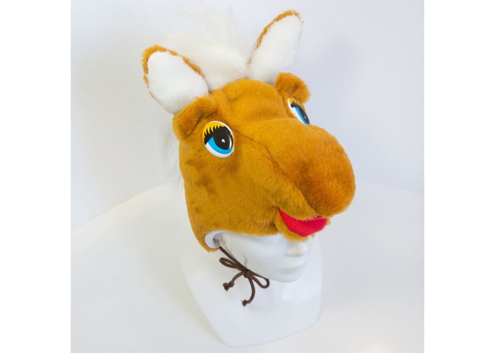 - шапка конячки пошита з коричневого і білого штучного хутра, а всередині - пухнастий гіпоалергенний холлофайбер, що сприятливо позначається на відчуттях малюка при торканні