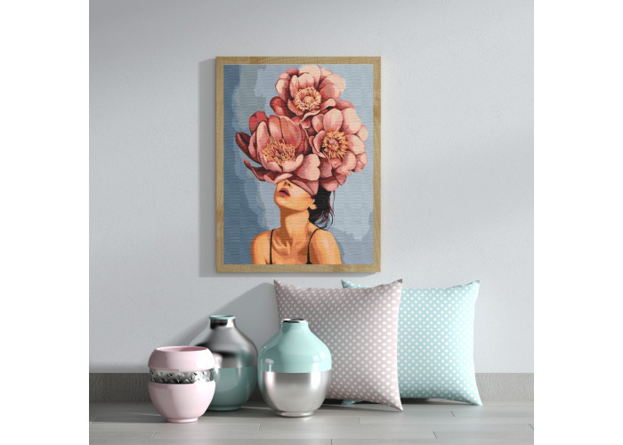 Картина для малювання за номерами Дівчина в квітучих півоніях від виробника Brushme