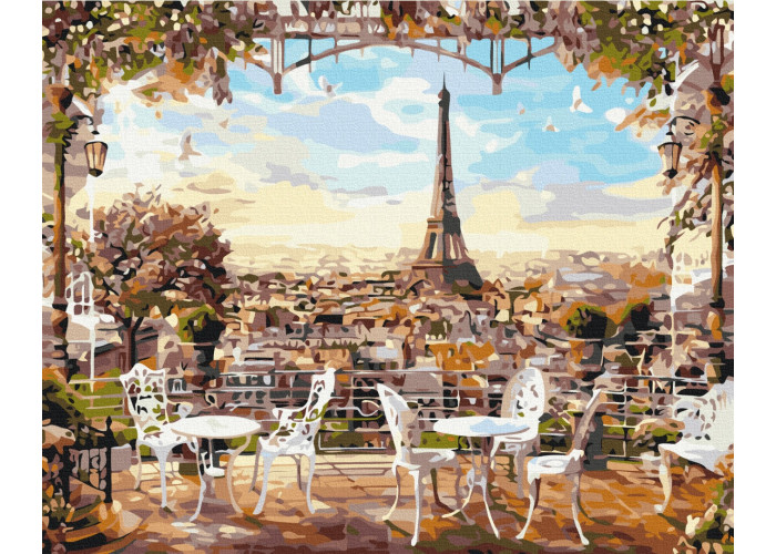 Картина для малювання за номерами Кафе з видом на Ейфелеву вежу від виробника Brushme