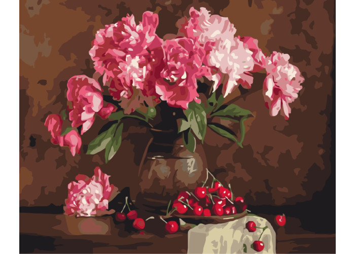 Картина для малювання за номерами Півонії та вишні від виробника Brushme