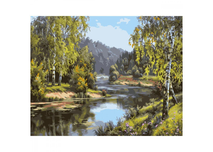 Картина за номерами "Біля річки" з лаком та рівнем від Strateg