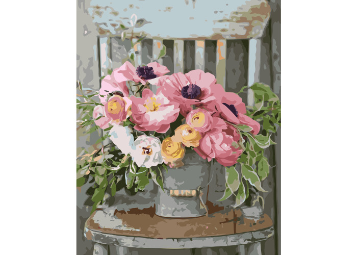 Картина для малювання за номерами Букет квітів на стільчику від виробника Стратег