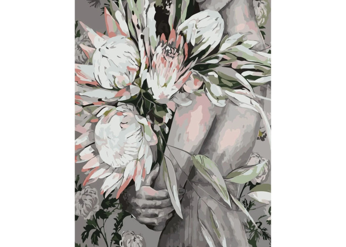 Картина за номерами "Букет протеї в обіймах" з лаком та рівнем від Strateg