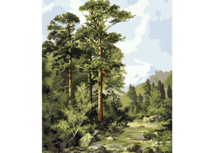 Картина за номерами "Гірська річка" з лаком та рівнем від Strateg