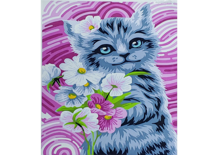 Картина за номерами "Котик на рожевому фоні" з лаком та рівнем від Strateg