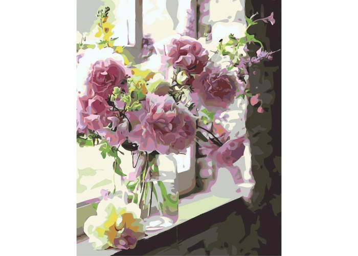 Картина за номерами "Квіти у бутлі" з лаком та рівнем від Strateg