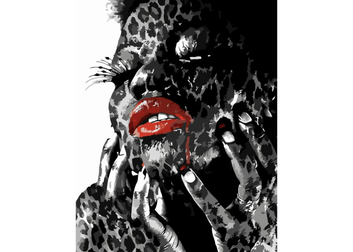 Картина за номерами "Леопардова дівчина" з лаком та рівнем від Strateg