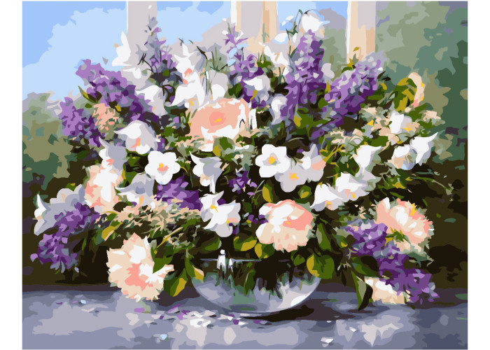 Картина для малювання за номерами Ніжний весняний букет біля вікна від виробника Стратег
