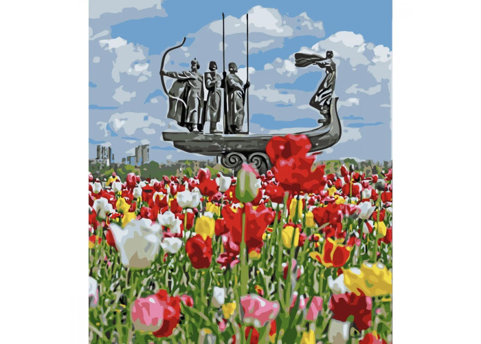 Картина за номерами "Засновники серед тюльпанів" з лаком та рівнем від Strateg