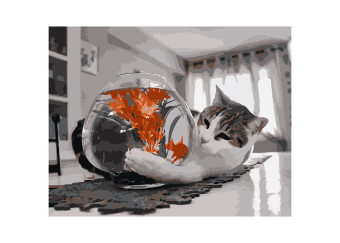 Картина за номерами Кіт та акваріум від виробника Strateg