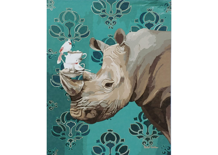 Картина за номерами "Носоріг з пташкою" з лаком та рівнем від Strateg