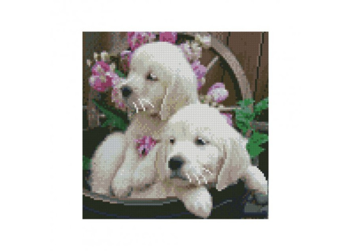Картина за номерами з алмазною мозаїкою Білі цуценята від виробника Стратег