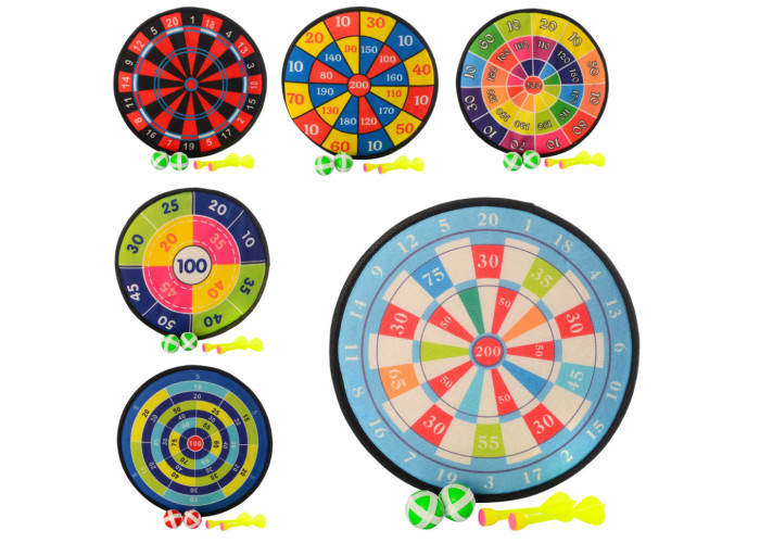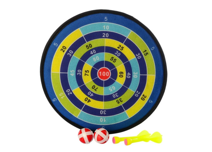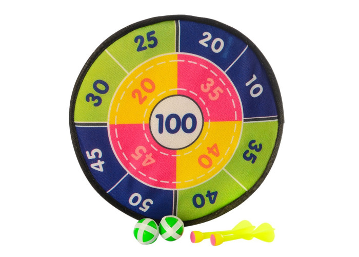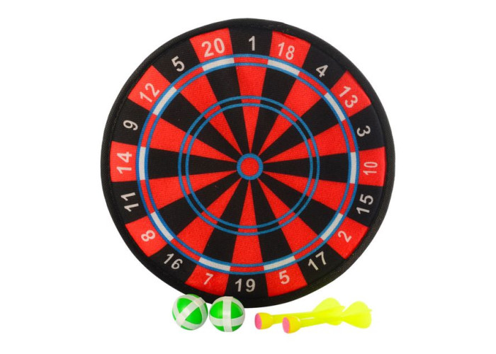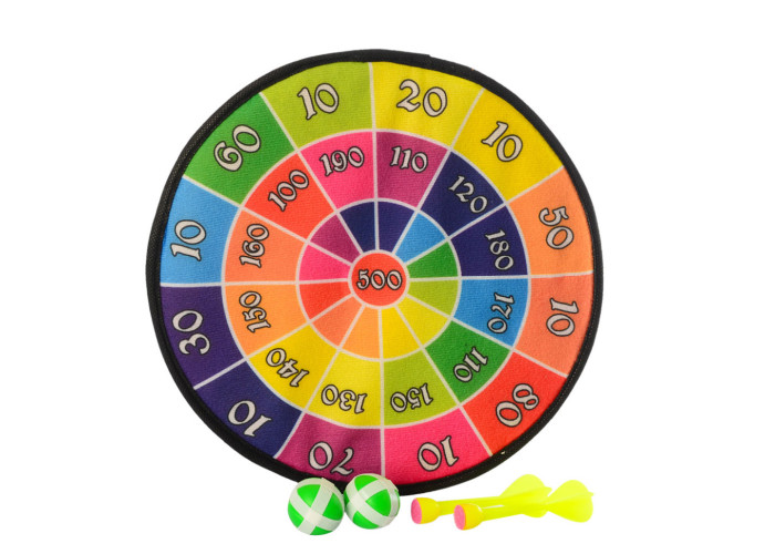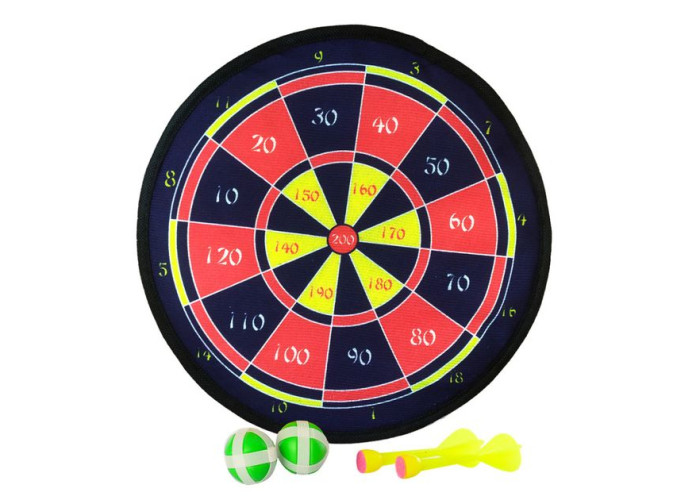 Дартс на липучці – це кумедна гра на влучність. У комплект входить яскрава барвиста мішень, два безпечні дротики на липучках і два м'ячики також на липучках. Така гра добре розвиває влучність, координацію рухів.