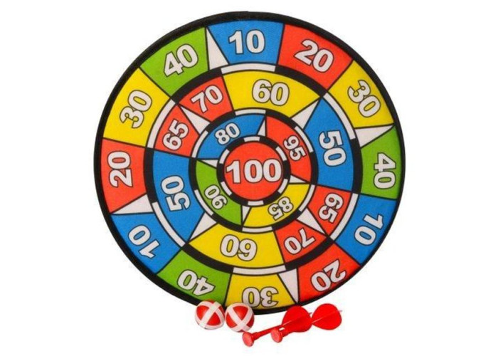 Такий вид гри "Дартс" призначений для найменших непосид, оскільки розвиває у малюків координацію рухів, влучність, лідерські якості і до того ж є абсолютно безпечним, також сприяє всебічному розвитку та техніки рахунку в розумі. Поле виготовлене із міцного щільного картону та покрите спеціальним шорстким матеріалом, завдяки чому м'ячики та дротики з легкістю чіпляються до нього. Мета гри, це набрати більше балів, ніж твій противник. У комплекті 2 м'ячики, 2 дротики.