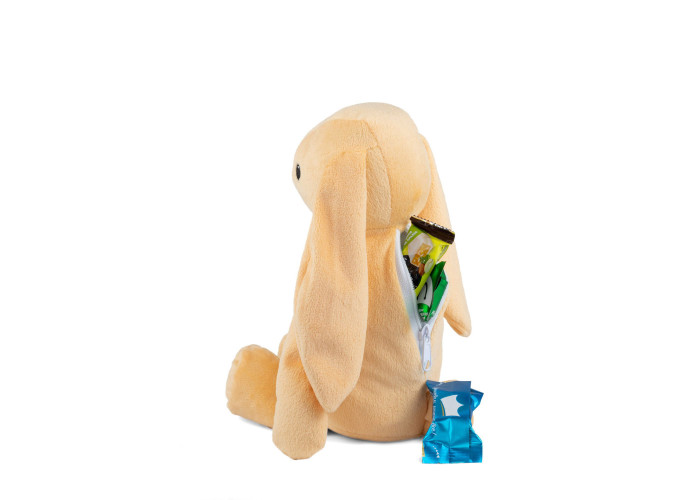 - м'яка іграшка цукерниця зайчик Хагсі виготовлена з безпечного мікроплюша, а всередині голови і кінцівок - холлофайбер.