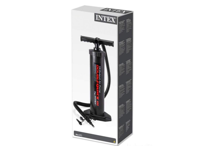 Ручний насос великої місткості Intex 68615 дозволить вам не залежати від наявності поруч електромережі, що робить його практично незамінним на морі або озері, в походах і на пікніках. Цей легкий і міцний ручний насос призначений для накачування надувних ліжок і басейнів, човнів, дитячих іграшок, м'ячів і інших надувних виробів середнього і великого обсягу. Подвійний клапан качає повітря при ході вгору і вниз. Може накачувати і випускати повітря. У комплекті гофрований шланг з 3 різними насадками-перехідниками, які можна з успіхом використовувати для різних типів надувних товарів різних виробників.