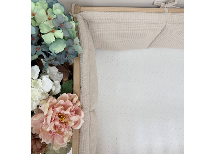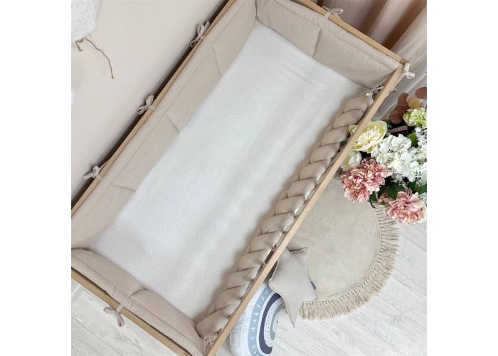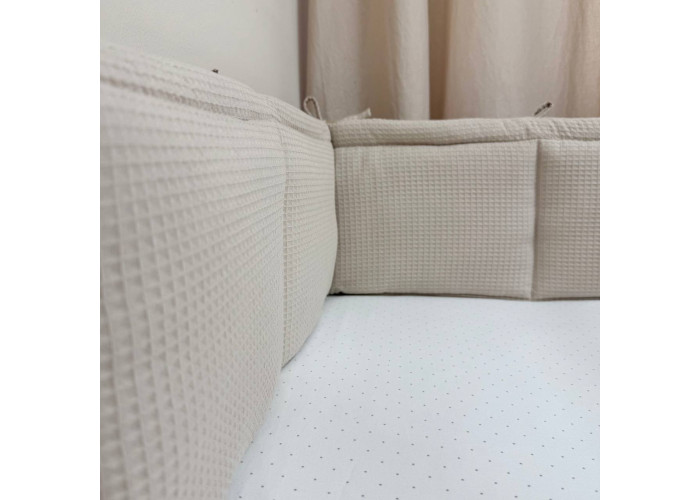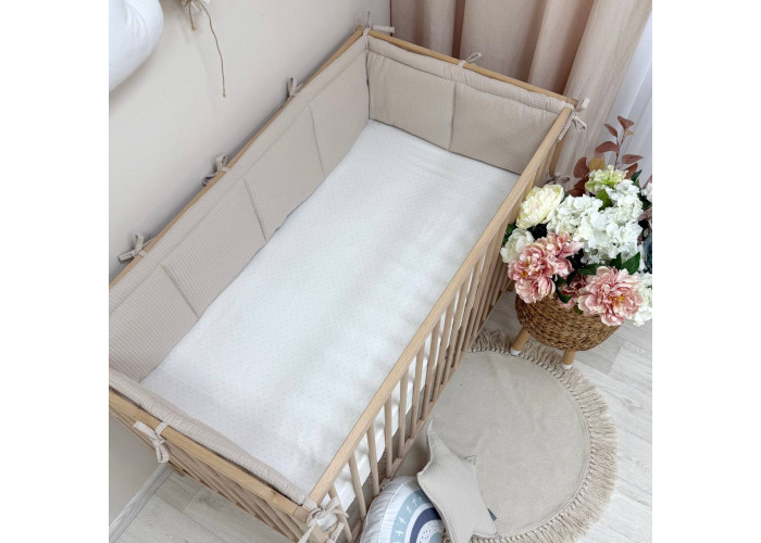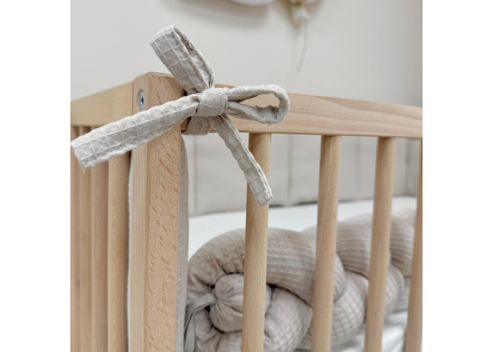 Фенс-бортики - новий різновид цілісних бортиків на три сторони ліжечка. За допомогою зав'язок вони кріпляться на стінки ліжечка, створюючі затишне "гніздечко" для сну немовляти.