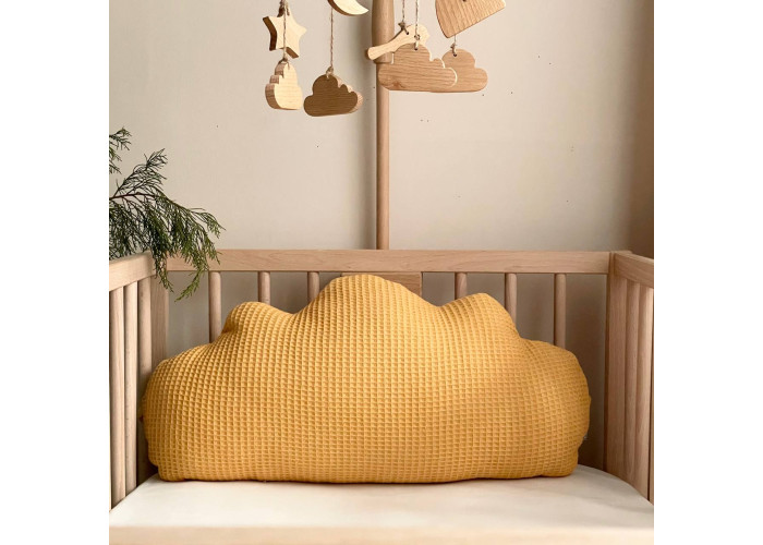 Красива і оригінальна подушечка у формі хмаринки для дитячого ліжечка. Використовується як захисний бортик, є красивим аксесуаром, який буде прикрашати дитячу кімнату.