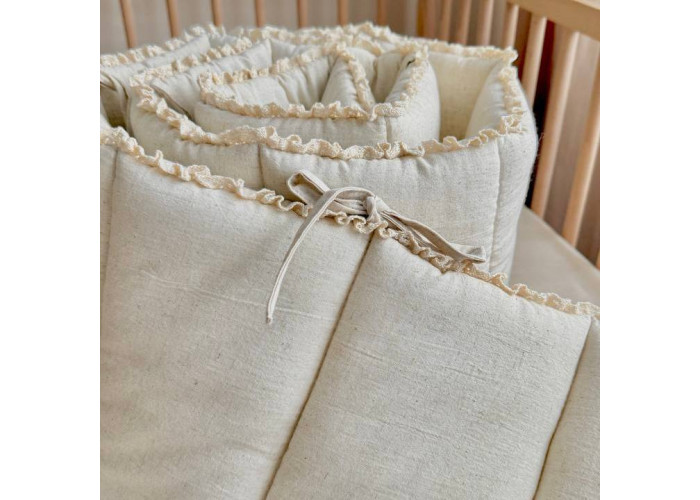 За допомогою зав'язок вони кріпляться на бічні стінки ліжечка, створюється затишне «гніздечко» для сну немовляти.