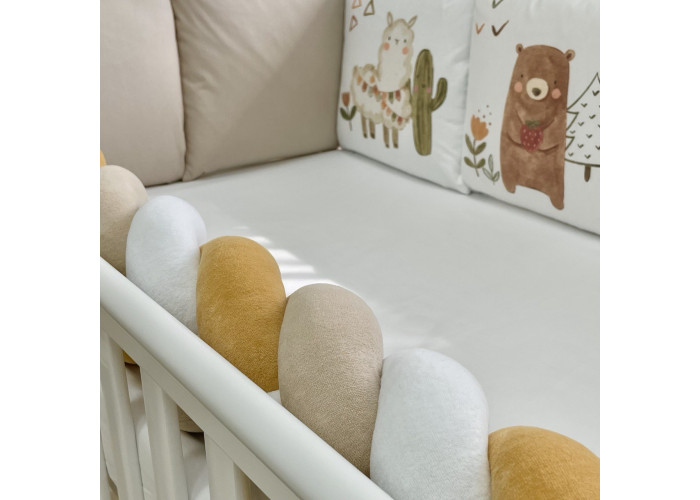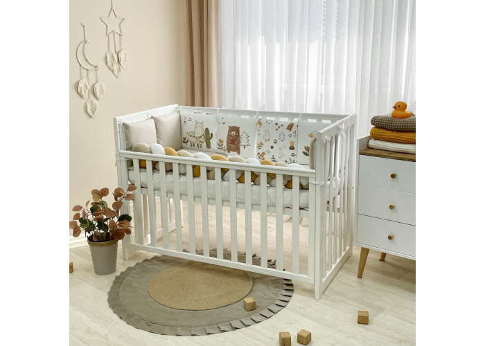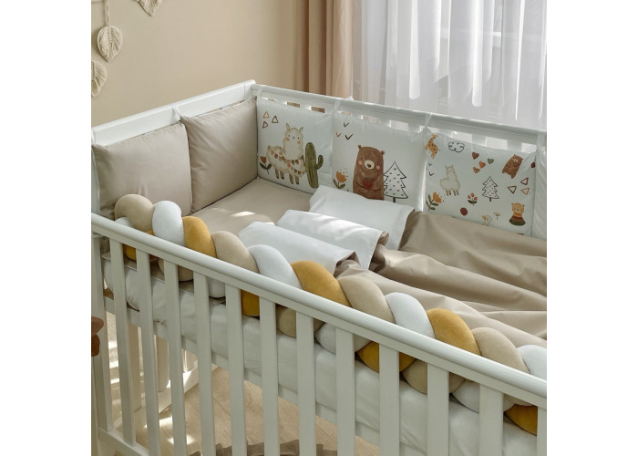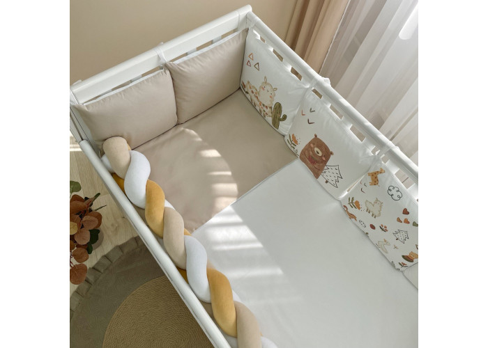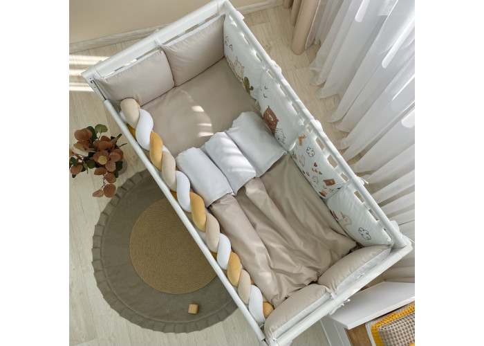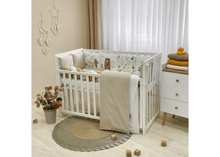 Комплект постільної білизни з 6 предметів (бортики, ковдра, подушка, підковдра, наволочка, простирадло), 100% бавовна.