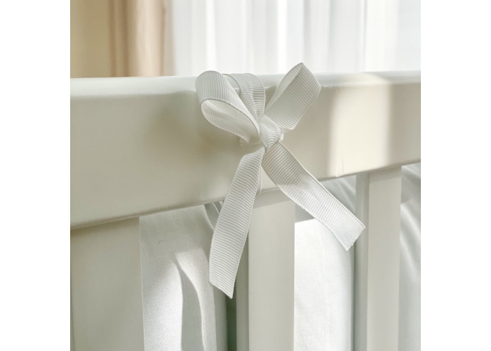 Підковдра, наволочка та простирадло, пошиті з натурального бавовняного матеріалу попліна. Простирадло на гумці ідеально повторює форму матраца в ліжку. Ecotton - екологічно чистий, гіпоалергенний наповнювач, створений на основі натуральних бавовняних волокон. Ecotton полегшений та вдосконалений спеціально для виготовлення ковдр та подушок у ліжечко, на базі основних норм та вимог до постільних речей для новонароджених. Наповнювач бортиків - силіконізоване волокно.