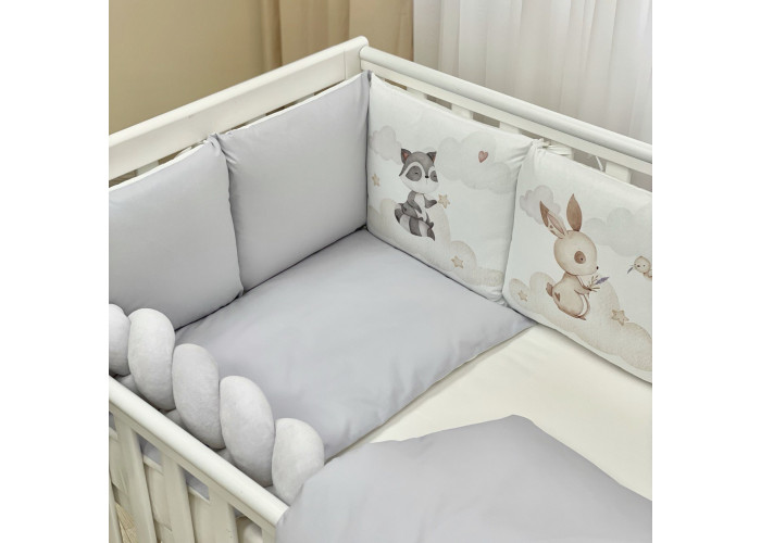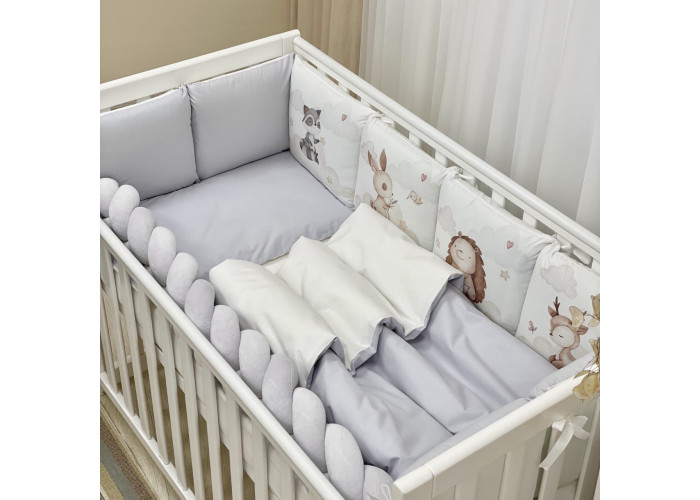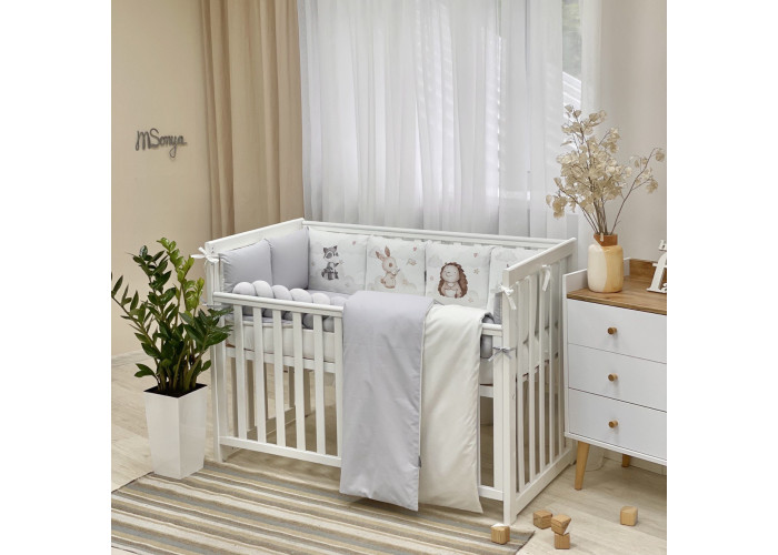 Комплект постільної білизни з 6 предметів (бортики, ковдра, подушка, підковдра, наволочка, простирадло), 100% бавовна.
