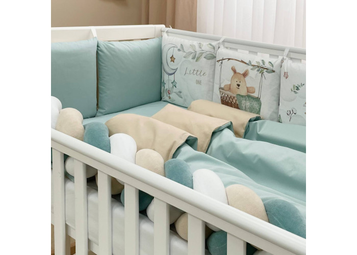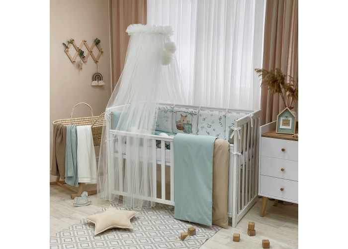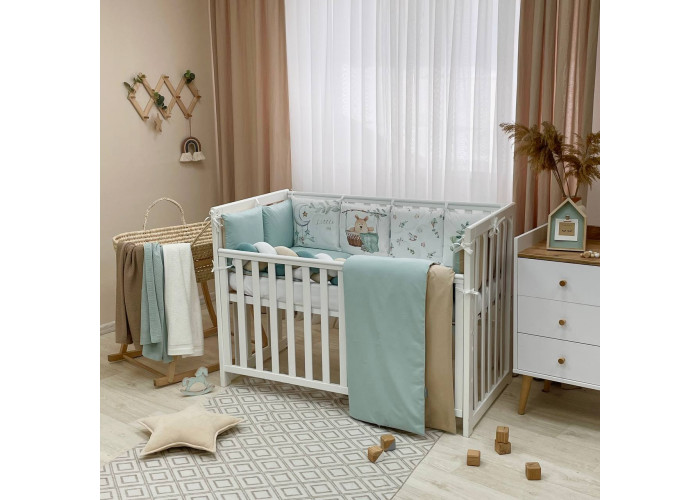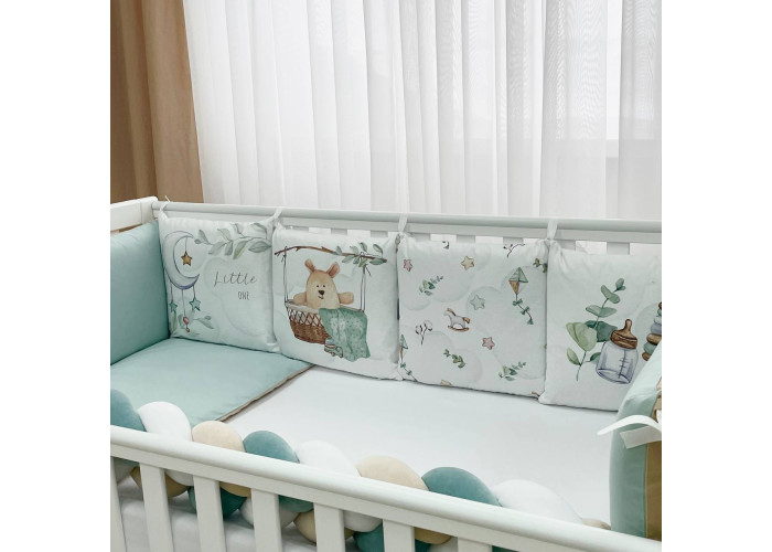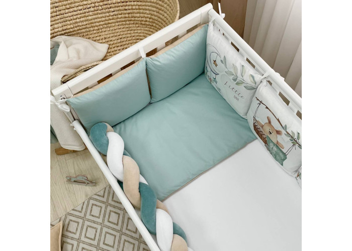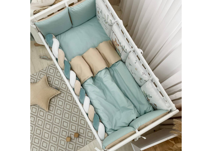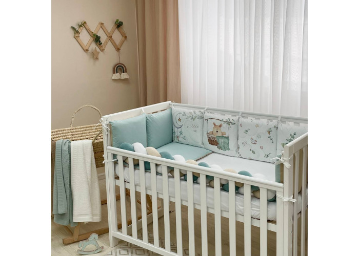 Комплект постільної білизни з 6 предметів (бортики, ковдра, подушка, підковдра, наволочка, простирадло), 100% бавовна.