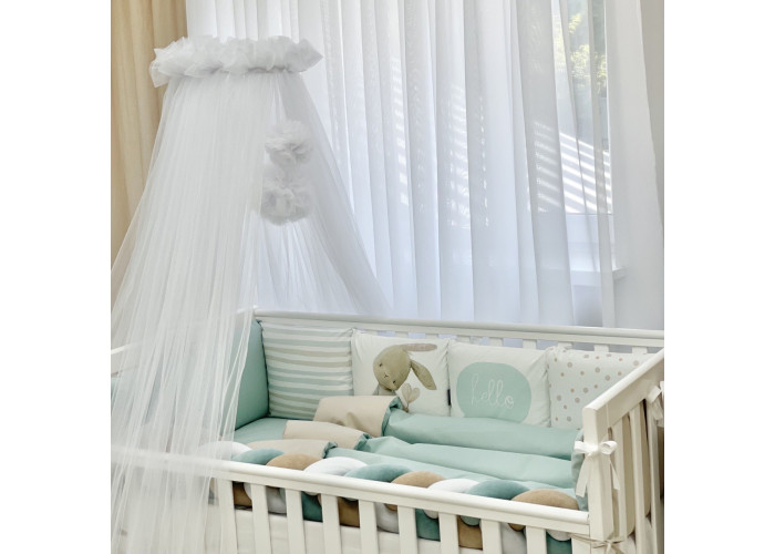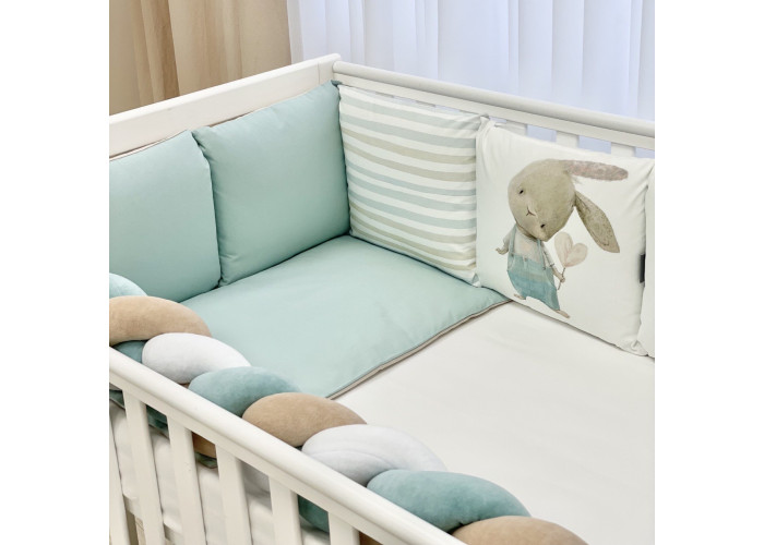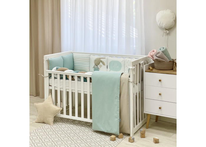 Комплект постільної білизни з 6 предметів (бортики, ковдра, подушка, підковдра, наволочка, простирадло), 100% бавовна.