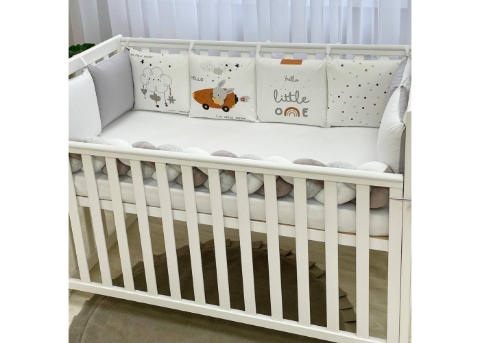Комплект постільної білизни з 6 предметів (бортики, ковдра, подушка, підковдра, наволочка, простирадло), 100% бавовна.