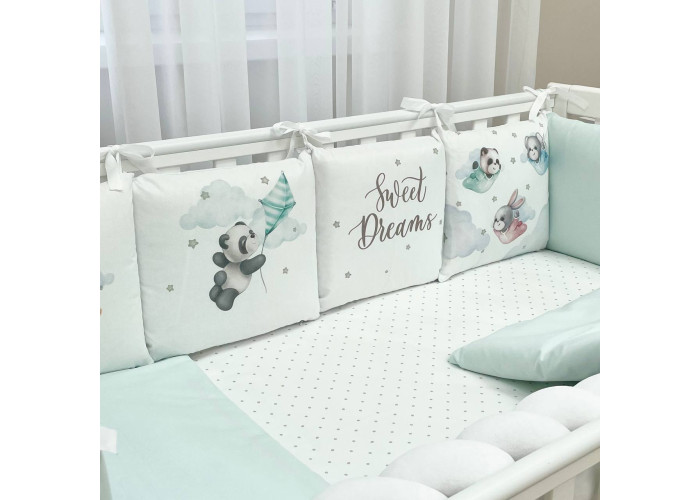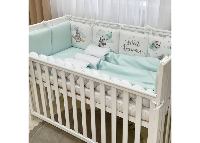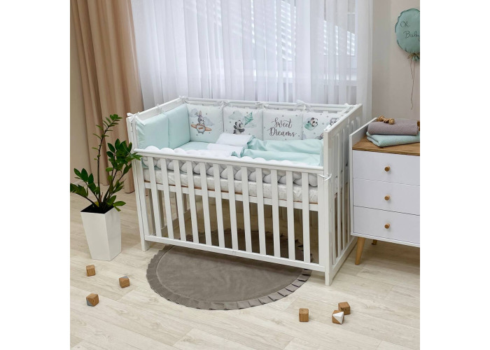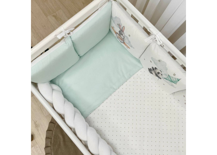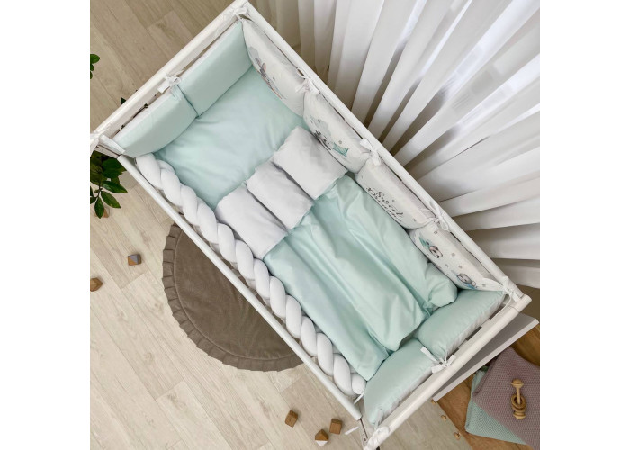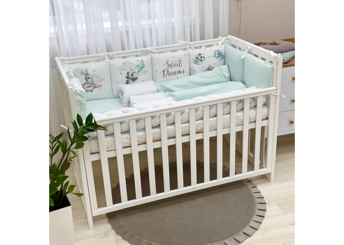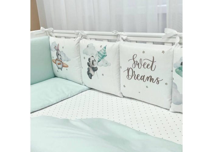 Комплект постільної білизни з 6 предметів (бортики, ковдра, подушка, підковдра, наволочка, простирадло), 100% бавовна.