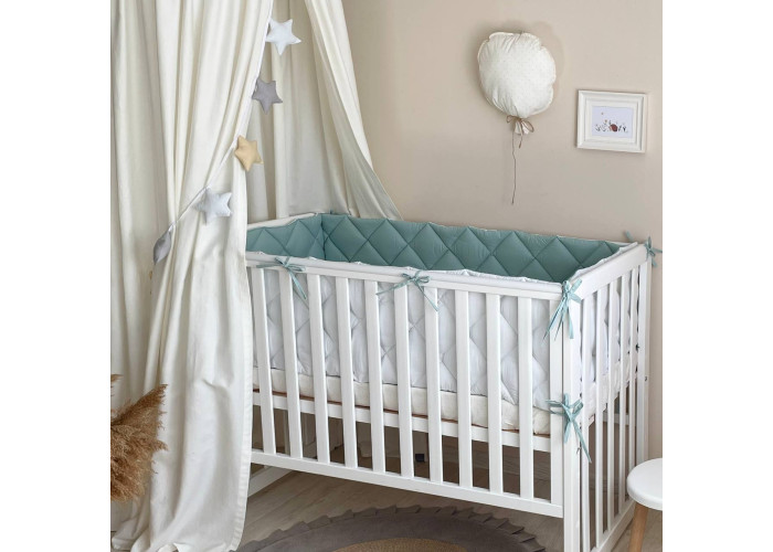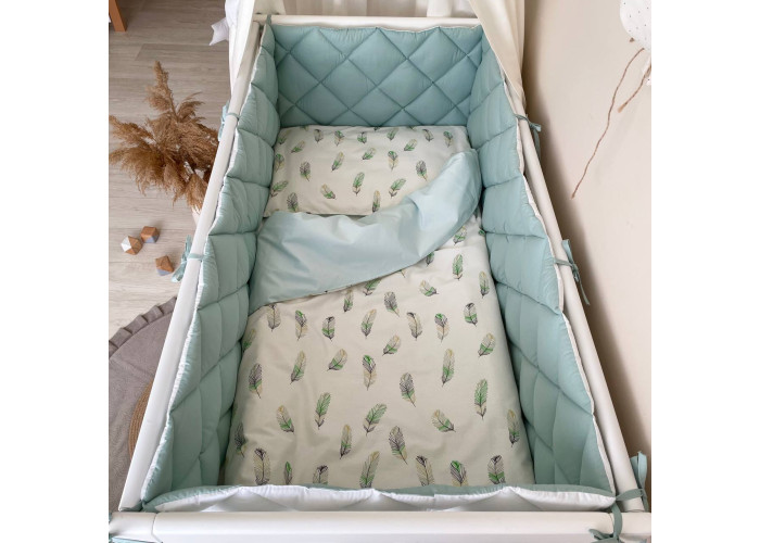 Комплект постільної білизни з 6 предметів (бортики, ковдра, подушка, підковдра, наволочка, простирадло), 100% бавовна.