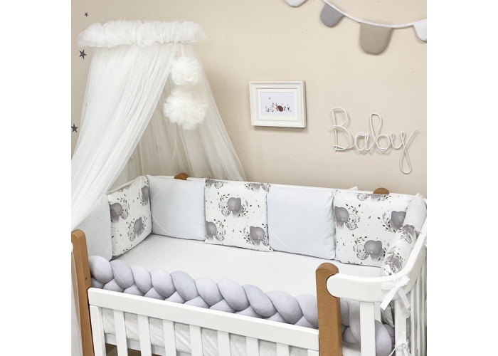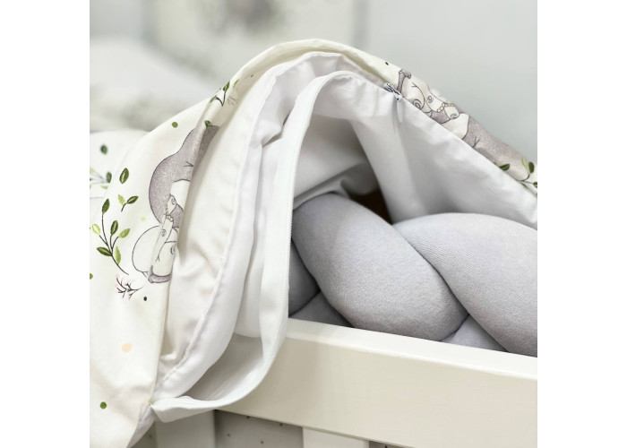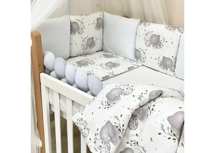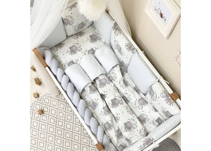 Комплект постільної білизни з 6 предметів (бортики, ковдра, подушка, підковдра, наволочка, простирадло), 100% бавовна.
