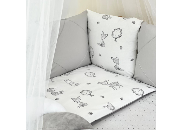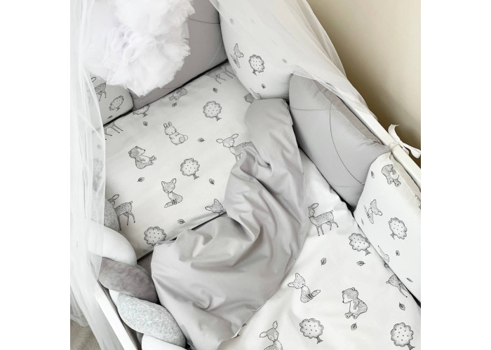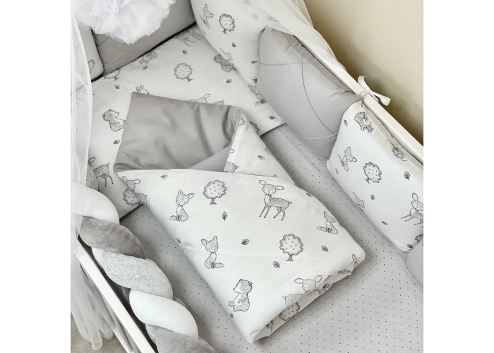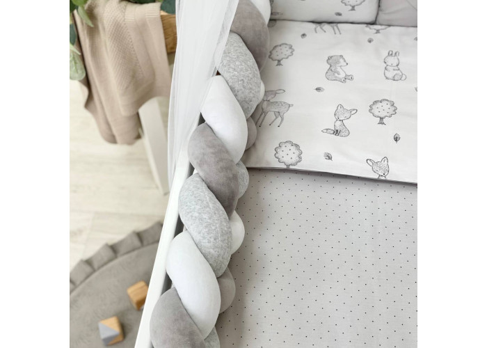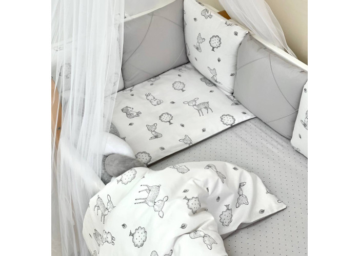 Комплект постільної білизни з 6 предметів (бортики, ковдра, подушка, підковдра, наволочка, простирадло), 100% бавовна.