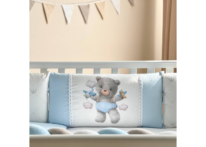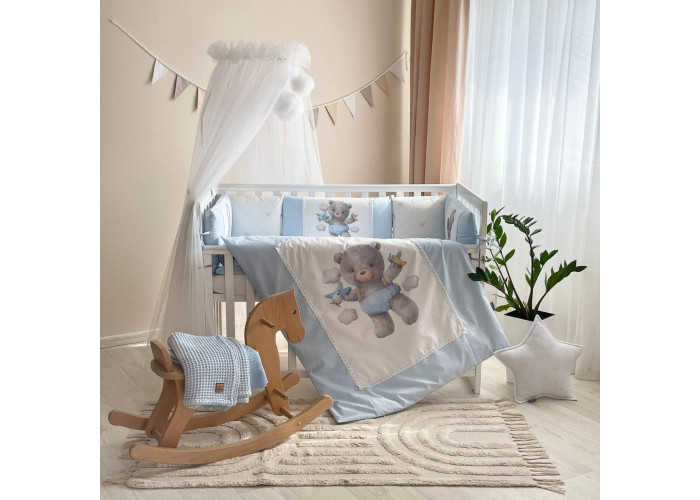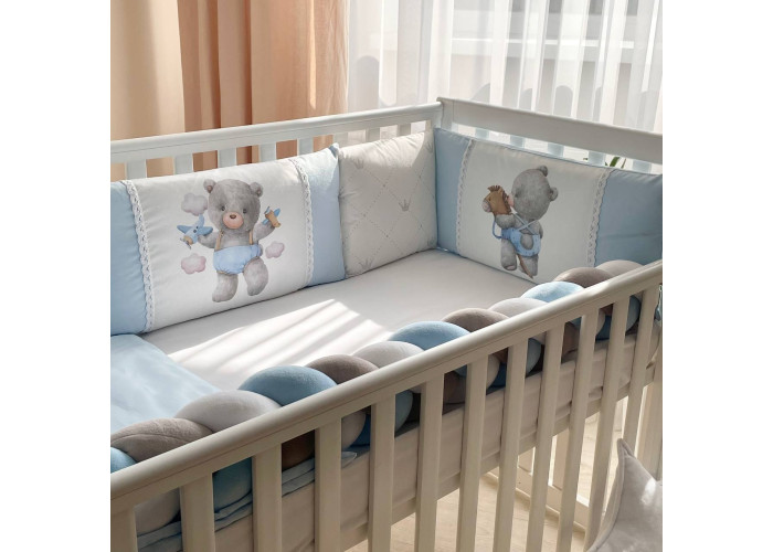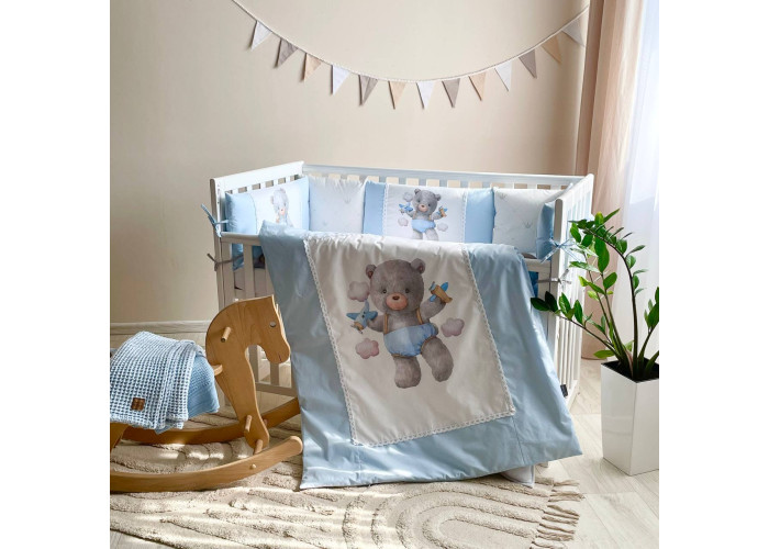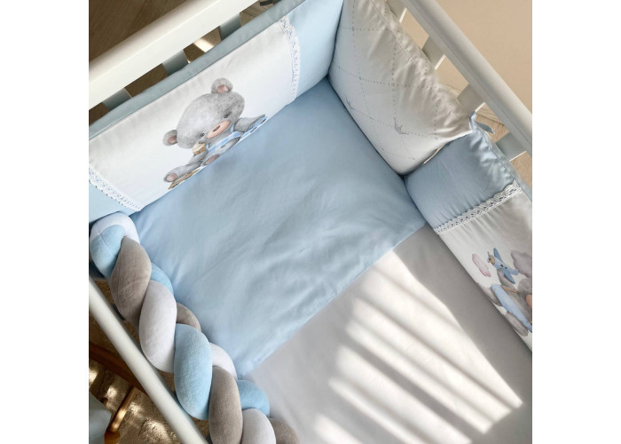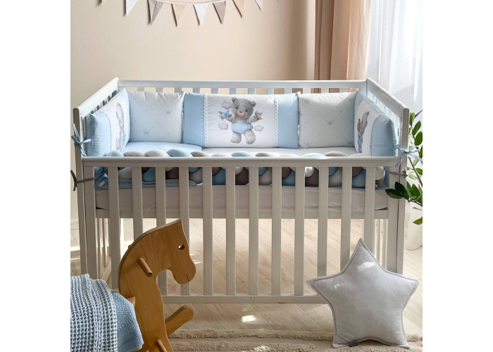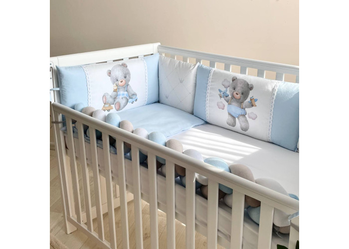 Комплект постільної білизни з 6 предметів (бортики, ковдра, подушка, підковдра, наволочка, простирадло), 100% бавовна.