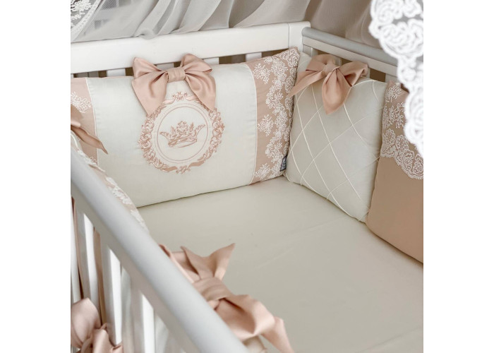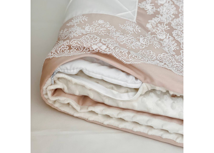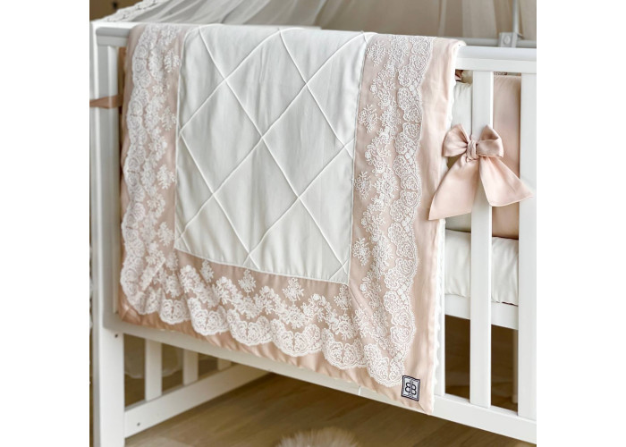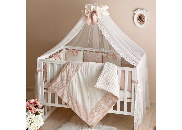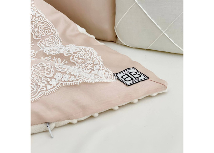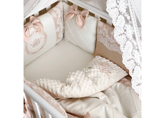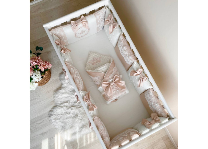 Комплект постільної білизни з 4 предметів (бортики, плед-конверт з ковдрою(сатин/Minky/вишивка/мереживо), бантик, простирадло).