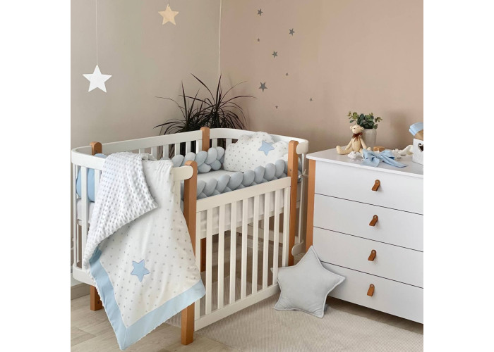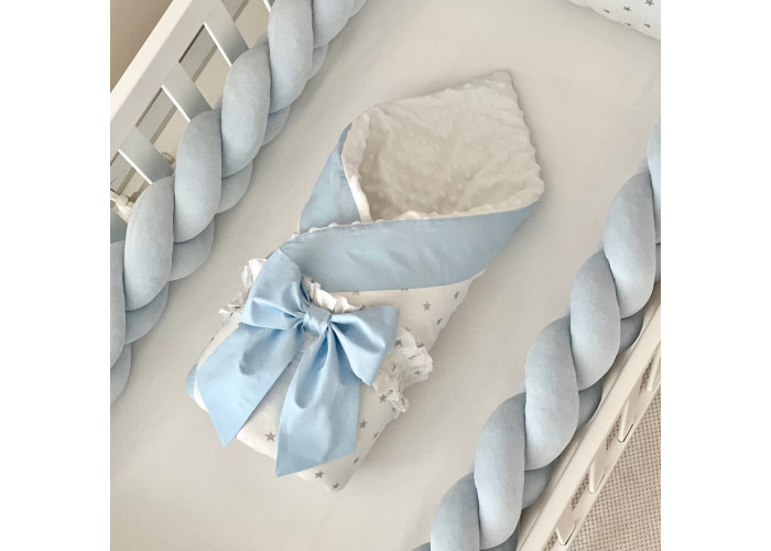 Комплект постільної білизни з 4 предметів (бортики, плед-конверт з ковдрою, бантик, простирадло).